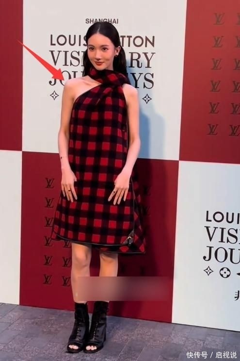 这位密斯似乎对“露肉”有着执念,即使躯壳依然瘦到极致,也依旧坚执走性感道路。 红毯上她老是心爱穿开叉降服,但因为骨架偏小,反而显得有些空荡。 这一次更是夸张,她身穿红黑格纹连衣裙,肩膀大面积泄漏,锁骨凹下明显,仿佛随时会飞出去。