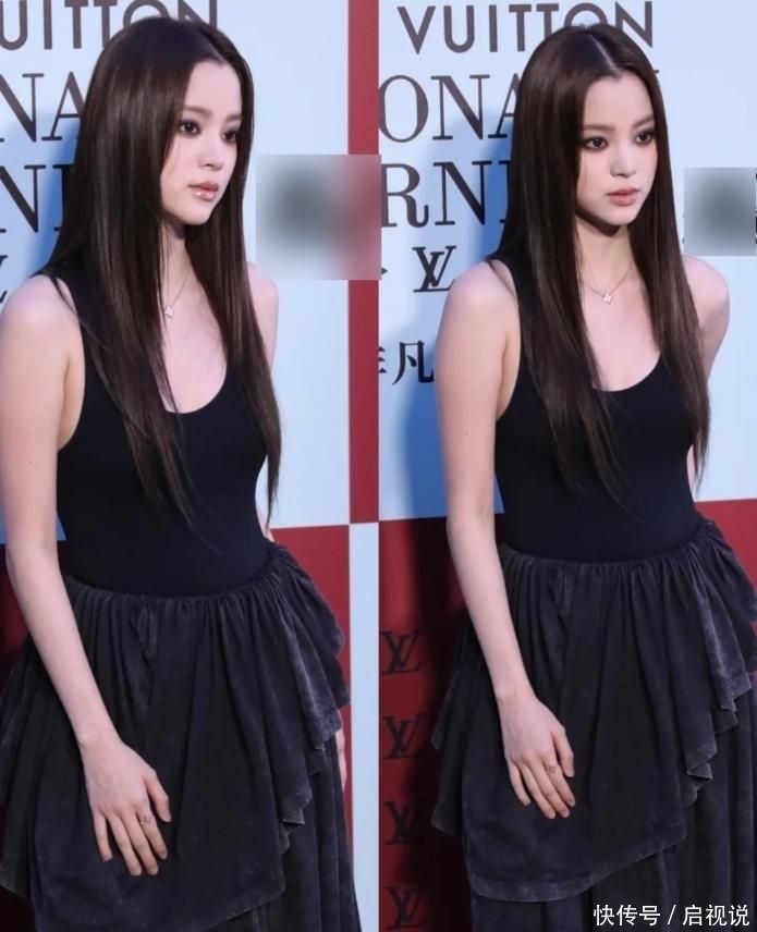 远远一看,还以为她准备转型玩哥特摇滚呢。 站在台上时,她全程千里默不语,神气冷峻,眼力中透着一点疏离感。明来岁纪轻轻,打扮得却像是三十好几的职场女强东谈主。 不外躯壳倒是挺能打的,在年青女星里算是弧线有致,比例合营,看着还算养眼。