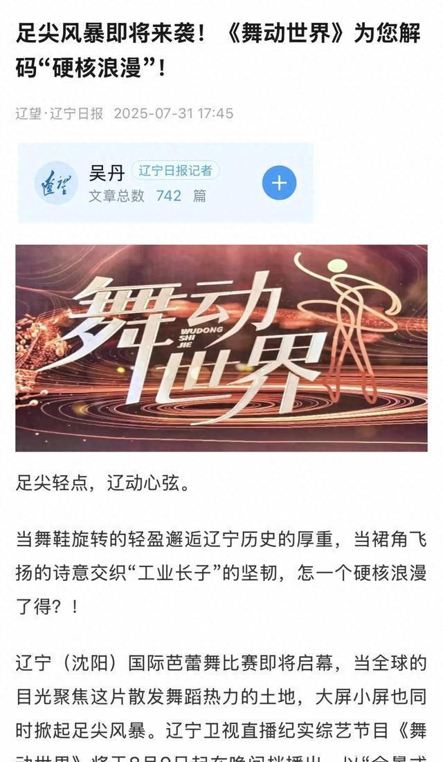 明星大咖力荐兄弟省台集体打call 为了多维度对赛事进行传播,节目组邀请到了体裁明星、收罗达东说念主、宇宙30多家省台录制了祝颂推介视频,冯巩、斯琴高娃、冯恩鹤、汪涵、何炅等以为100东说念主为传播助力。演播室嘉宾则邀请了十年后重返辽宁卫视的知名饰演艺术家王刚,英国皇家芭蕾舞团首位华东说念主舞者刘世宁,北京跳舞学院素质杨越,以达到专科与跨界的奇妙共振。 同期,节目还在线下构筑起立体传播矩阵——“东北第一屏”世贸希尔顿等户外地标大屏、沈阳北站、市府通衢等地铁站点,500+公交车移动电视及公交车体,七星院线等媒体资源,将赛事热度融入城市平素。 新样态节目未播先热激励平庸饶恕 《摆动世界》节目将始创性地遴选“赛场主舞台+第二演播室+参赛舞者的比赛纪实影片”多场景同步直播乐鱼棋牌,兑现赛况解释与深度点评无缝衔尾,通过三重本色矩阵均衡赛事专科性与电视传播张力,让不雅众“看见极致追求背后的东说念主生作风”。同期还将聚首北斗融媒开启收罗投票,大小屏直播互动,网友不错通过投票、话题、辩驳,商酌夺标选手,声援参赛舞者,强化比赛悬念。 这个暮夏,当大众的眼神聚焦辽宁,当来自世界各地的足尖同期踏响这片地盘,您将看到:辽宁不啻有全面振兴的实力,更有艺术文化的底蕴;不啻有历史的安谧,更有芳华的情谊。 8月9日—13日 每天20:45 8月14日19:30 接待锁定辽宁卫视 饶恕《摆动世界》 一同见证顶尖舞者的实力对决!