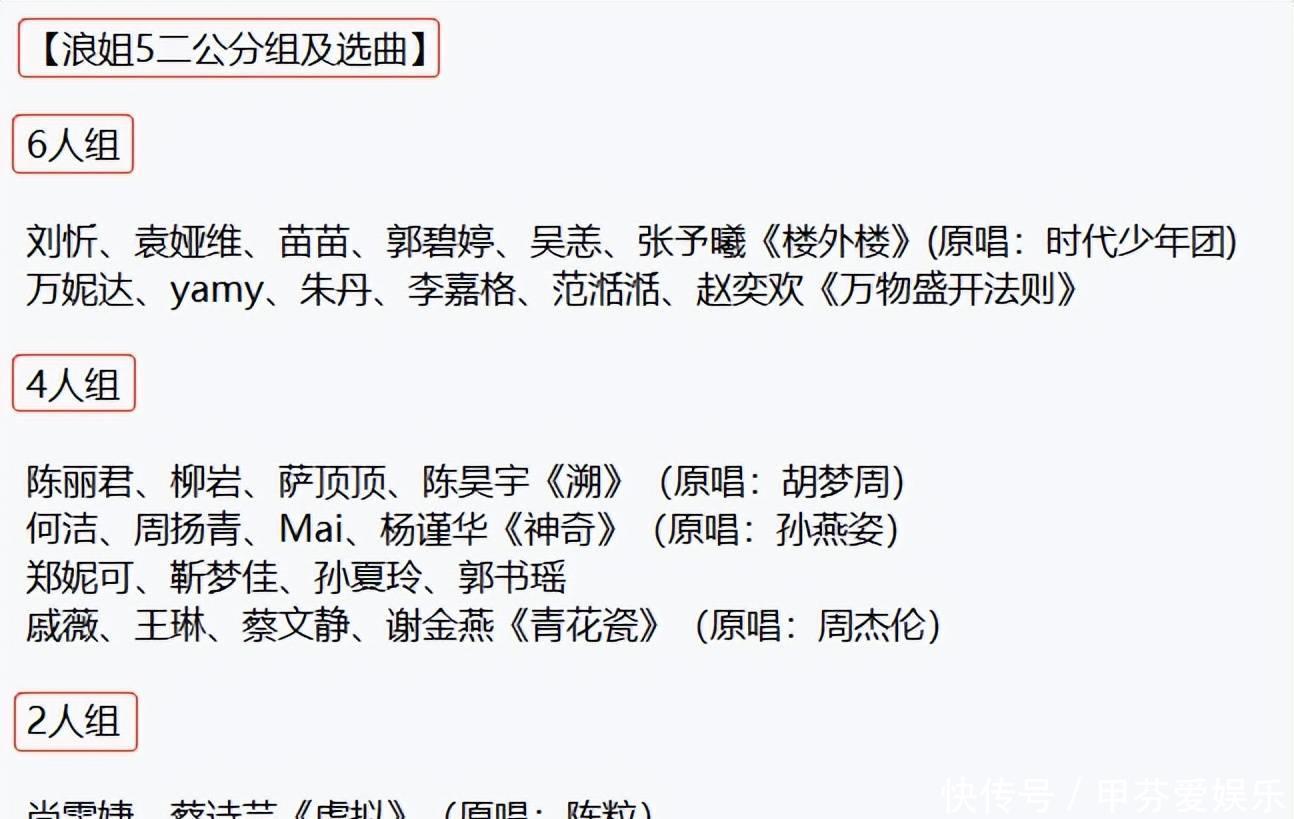 从二公的分组情况来看,《浪姐5》又开动出现了锁组的安谧,陈丽君、柳岩、萨顶顶、陈昊宇4东说念主从一公到二公都被分到一个组。